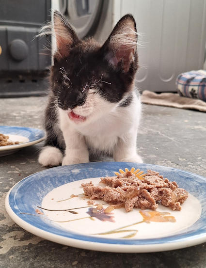I never would have believed it had someone told me I'd feel better once my eyes had been taken away! Apart from the obligatory cone of shame I had to wear, I was already much calmer when I came home after the operation. I am now footloose and cone-free - and I love life! I have so many toys to play with and every day I'm meeting new residents. I even met a strange big thing that panted all over me. I soon learned that this was 'Dog', also known as 'Leia'. There are all sorts of strange creatures here!